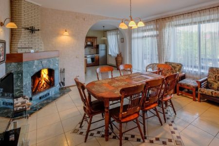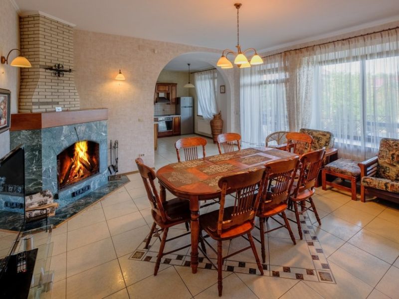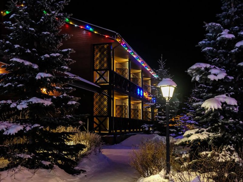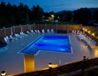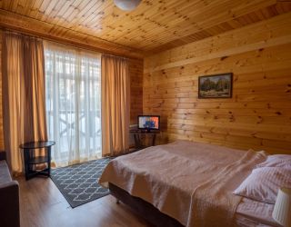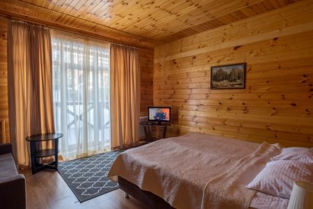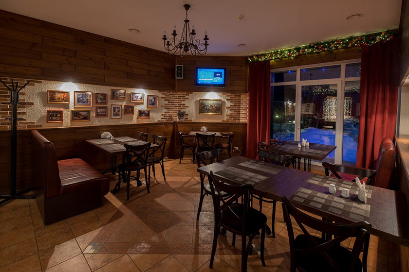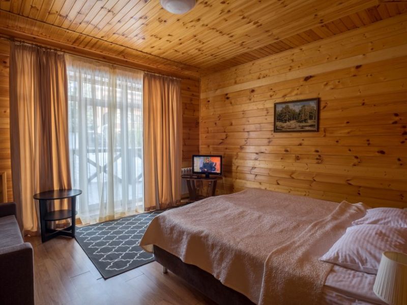 На территории работает пиццерия, рассчитанная на 50 мест. Для любителей мяса на углях организована мангальная зона с гриль-домиком. Отдохнуть и расслабиться гости могут в настоящей русской бане на дровах с бассейном, а летом доступен открытый бассейн с подогревом. Желающие могут арендовать велосипеды для прогулок по окрестностям или поиграть в бильярд, настольный теннис. Дети смогут весело провести время в игровой комнате или на детской площадке. Среди прочих удобств – парковка, безлимитный интернет и комната для хранения горнолыжного оборудования.