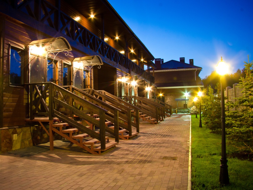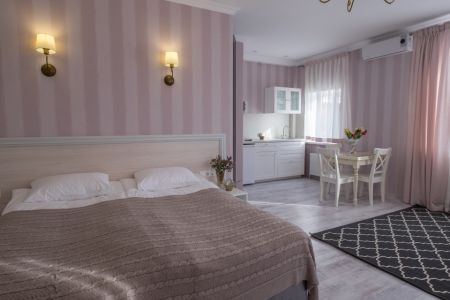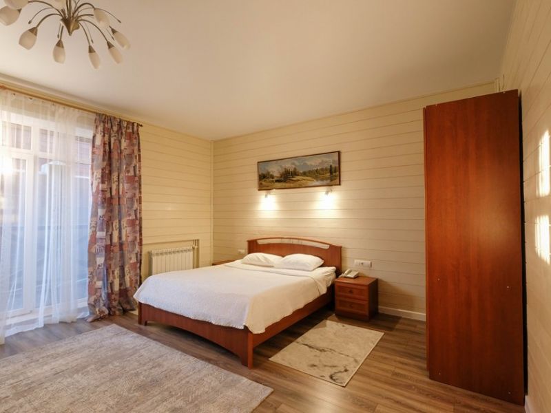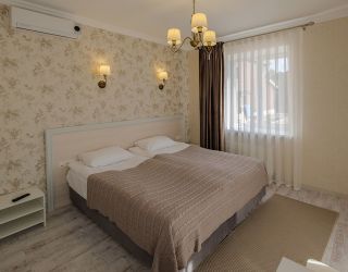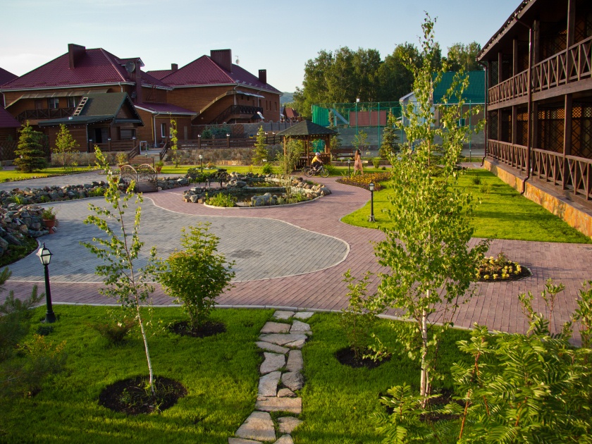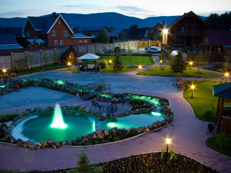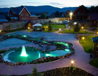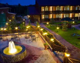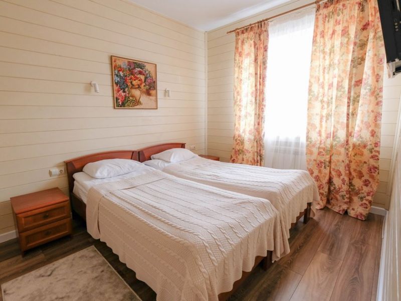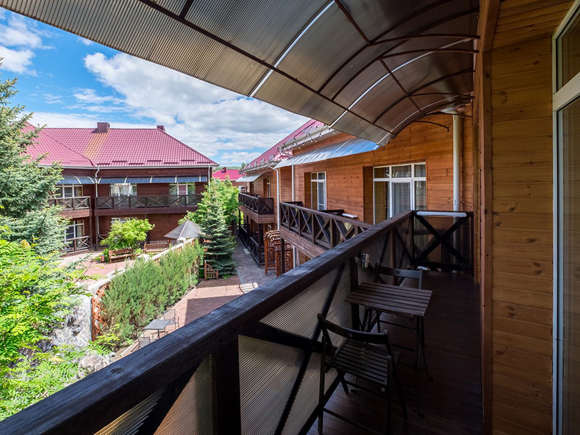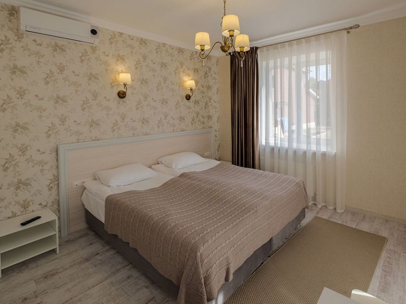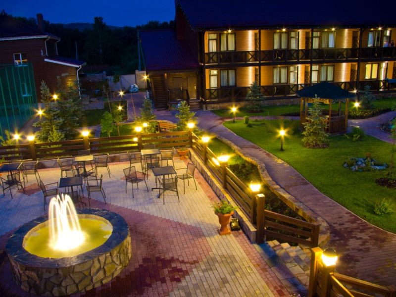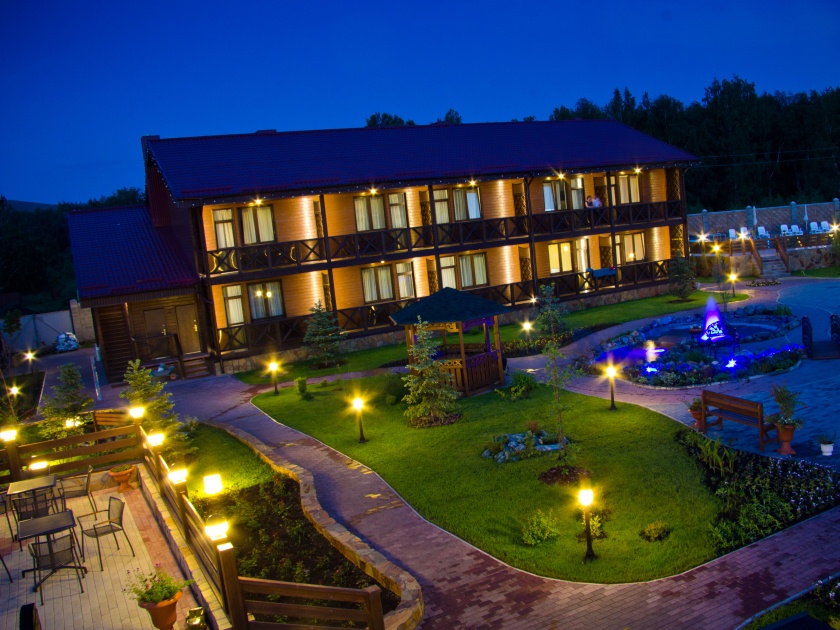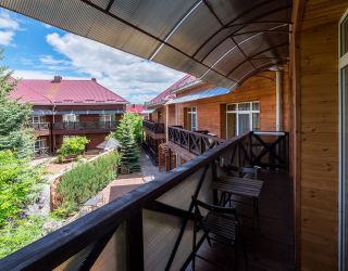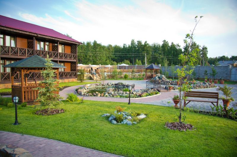 Комплекс занимает закрытую благоустроенную территорию с цветниками, клумбами, фонтанчиком, в темное время суток работает ночная подсветка. В распоряжении гостей 4 двухэтажных корпуса с персональным входом в каждый номер. Все номера оснащены удобными кроватями, диванами, организованы кухонные зоны с посудой и бытовой техникой. Ряд номеров оборудован посудомоечной и стиральной машинами. В индивидуальном санузле – душевая кабина или ванна, для гостей подготовлены косметические принадлежности.
